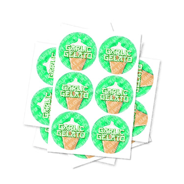 Autocollants circulaires en vinyle brillant de haute qualité Garlic Gelato. Veuillez choisir la taille et la quantité dont vous avez besoin dans le menu déroulant.
