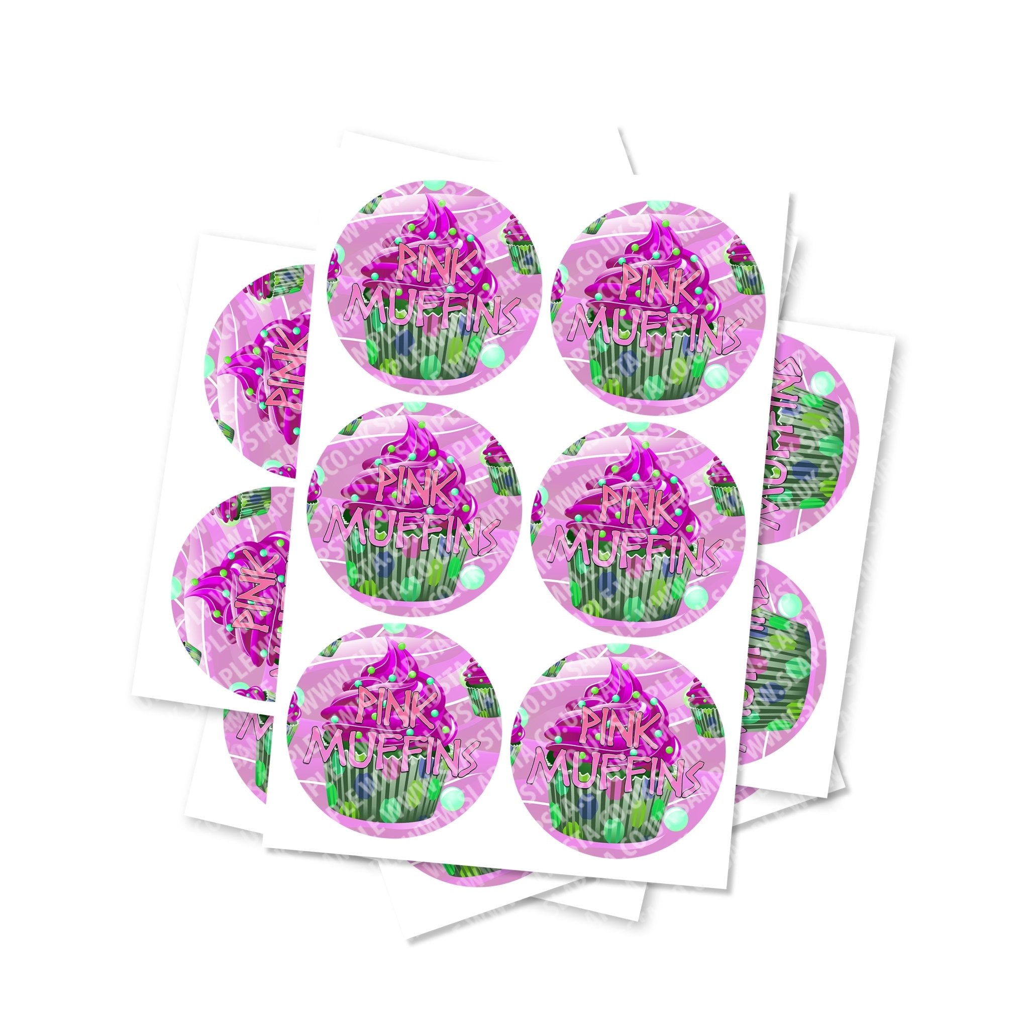 Autocollants circulaires en vinyle brillant Pink Muffins de haute qualité. Veuillez choisir la taille et la quantité dont vous avez besoin dans le menu déroulant.
