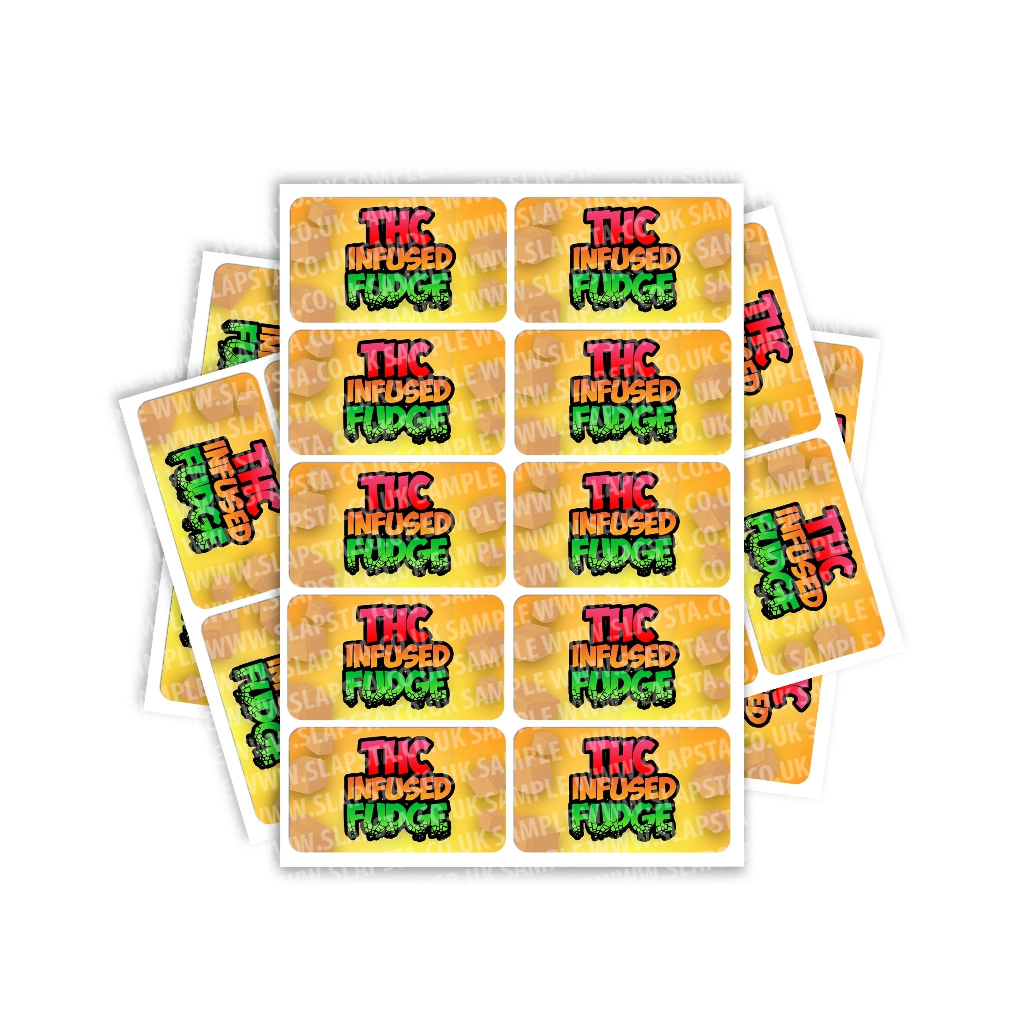 Étiquettes rectangulaires/pré-roulées pour caramel infusé au THC