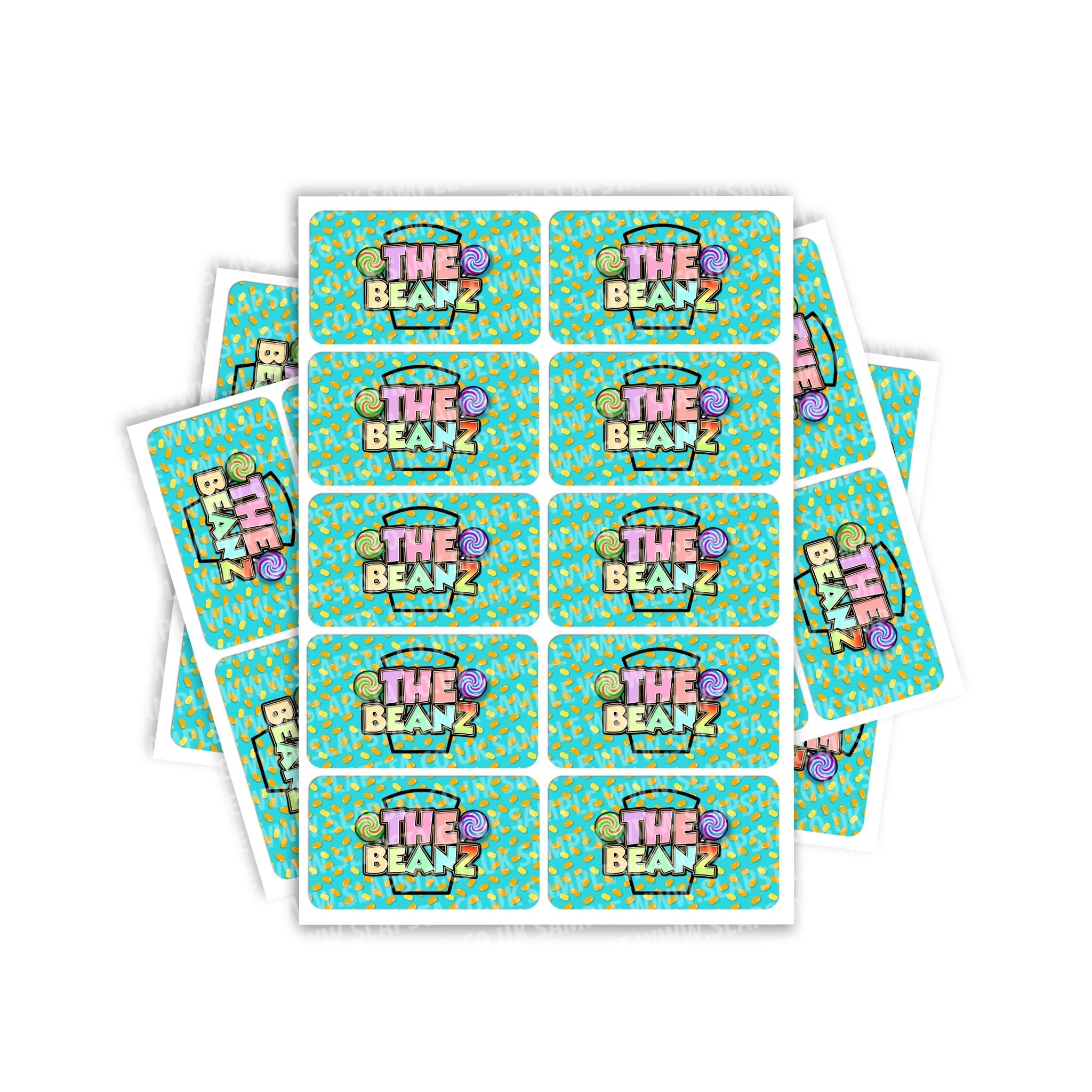 Étiquettes autocollantes en vinyle brillant Beanz. Veuillez choisir la taille et la quantité dont vous avez besoin. Pour obtenir de l'aide sur le dimensionnement, veuillez consulter l'image du guide des tailles ou utiliser les mesures fournies.