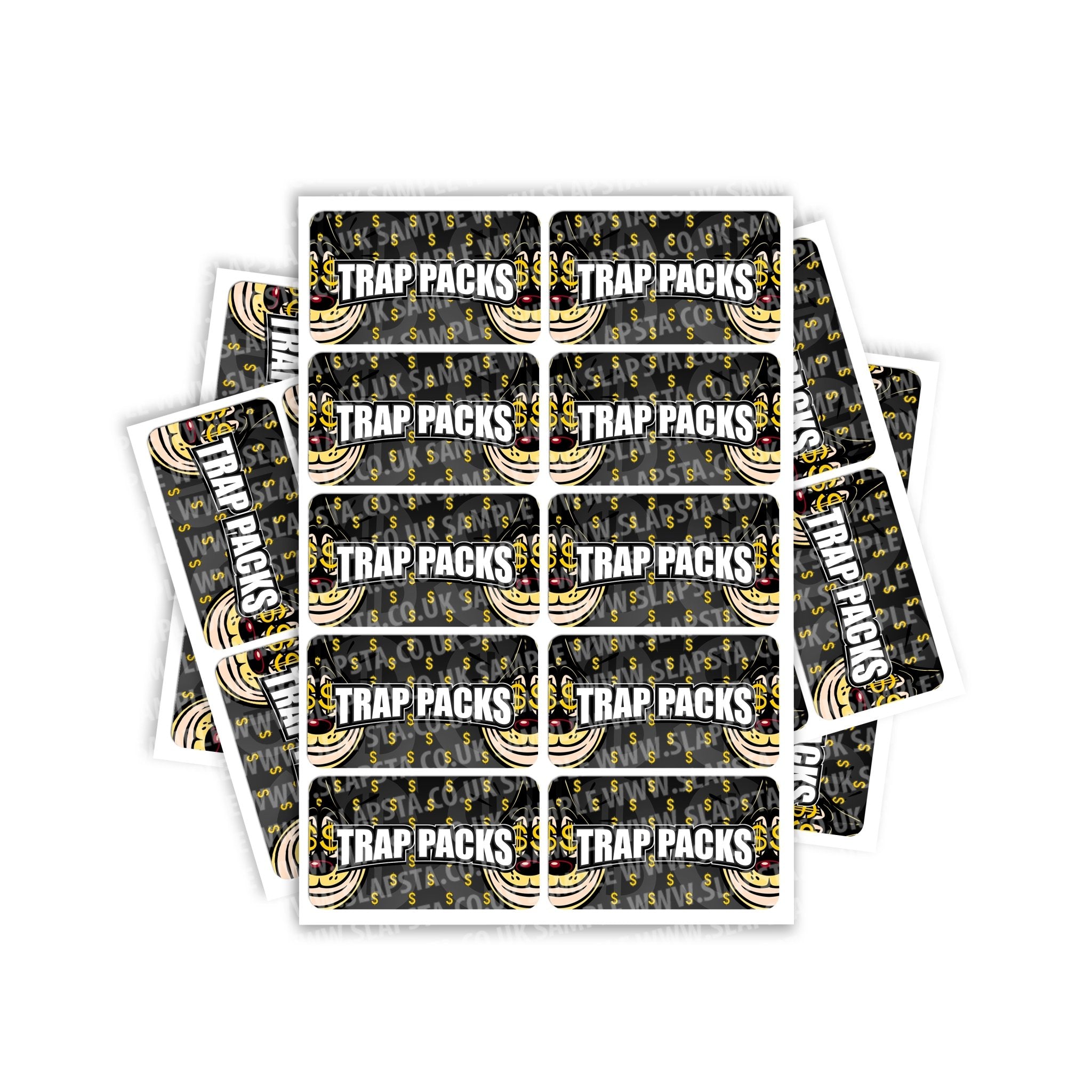 Étiquettes autocollantes en vinyle brillant Trap Packs. Veuillez choisir la taille et la quantité dont vous avez besoin. Pour obtenir de l'aide sur le choix des tailles, veuillez consulter l'image du guide des tailles ou utiliser les mesures fournies.