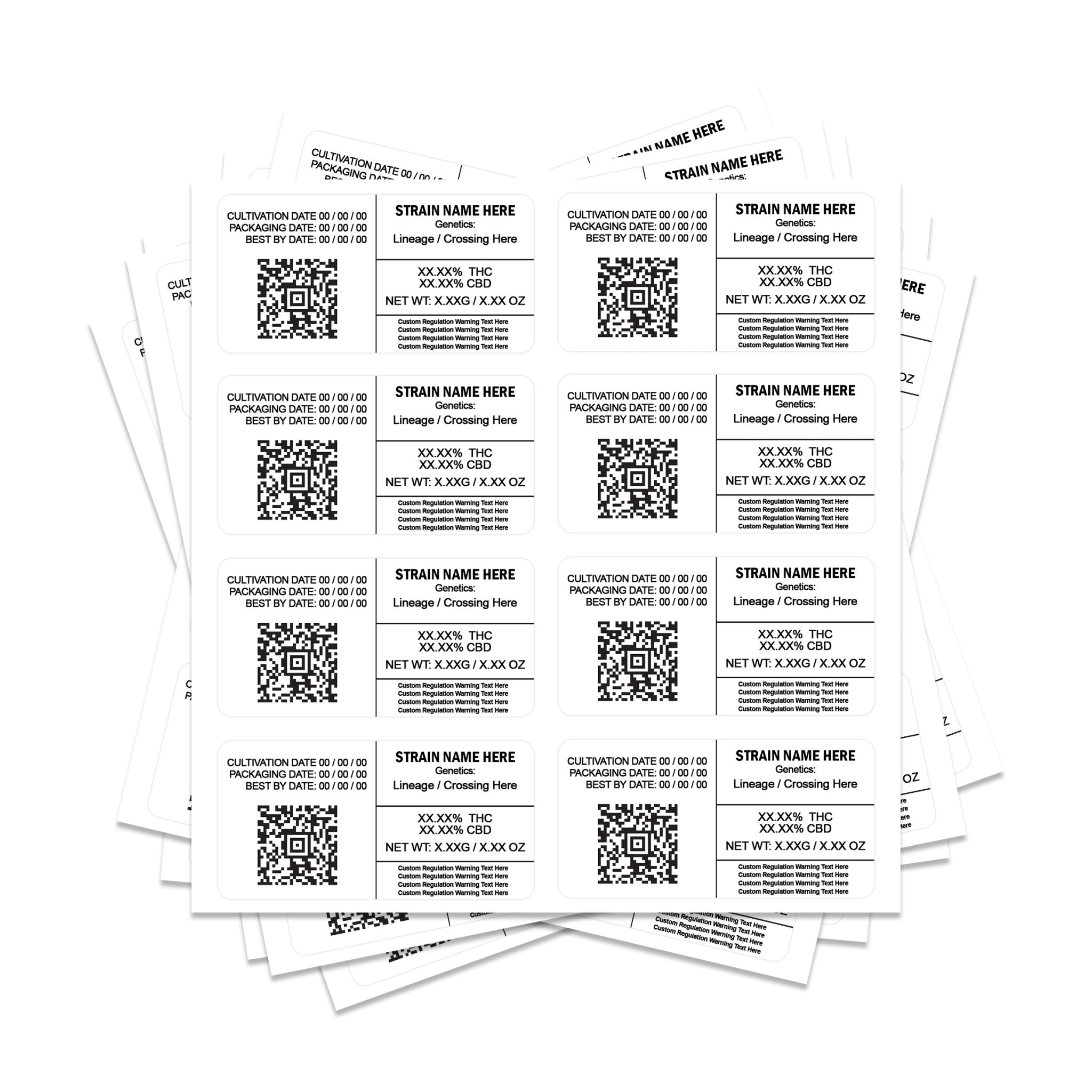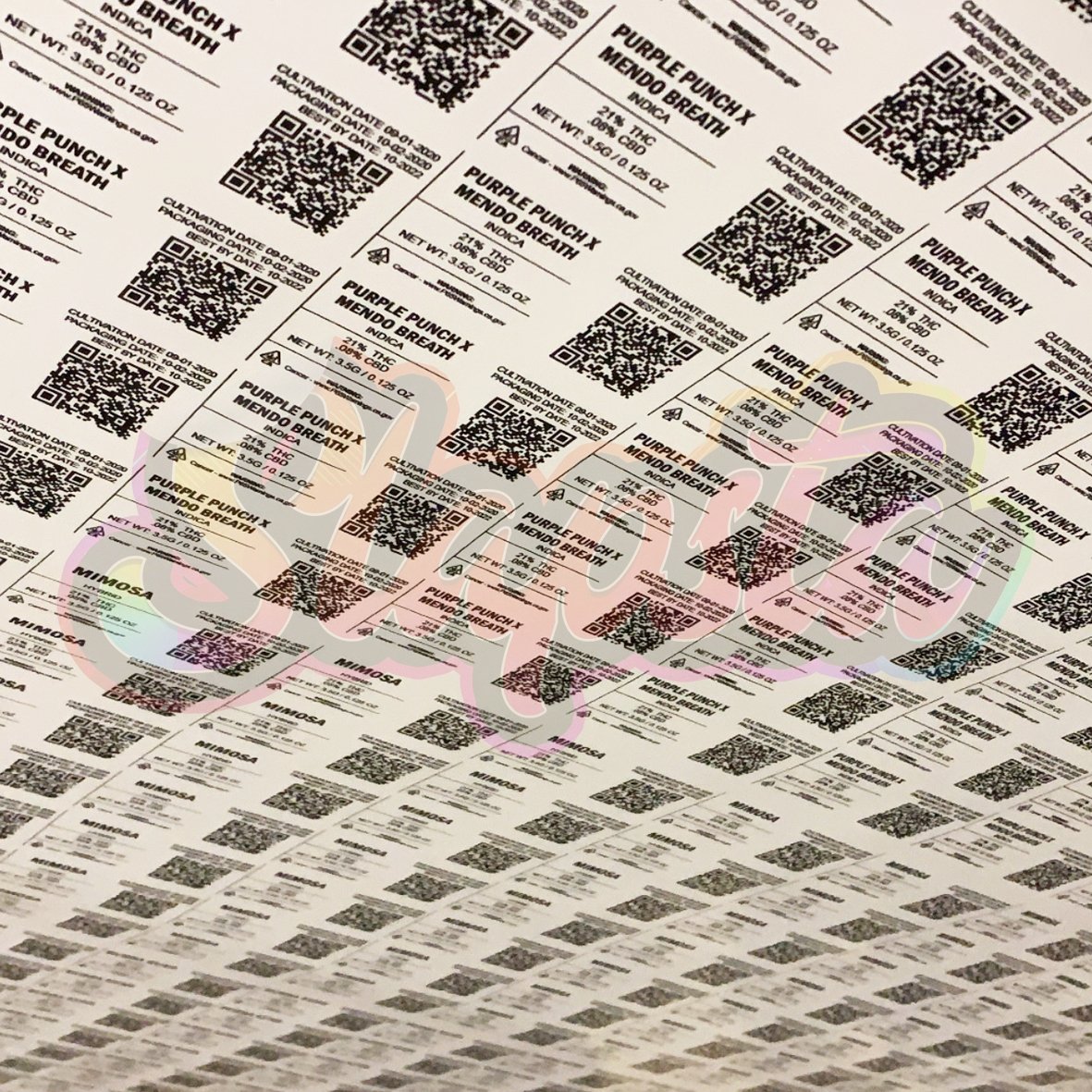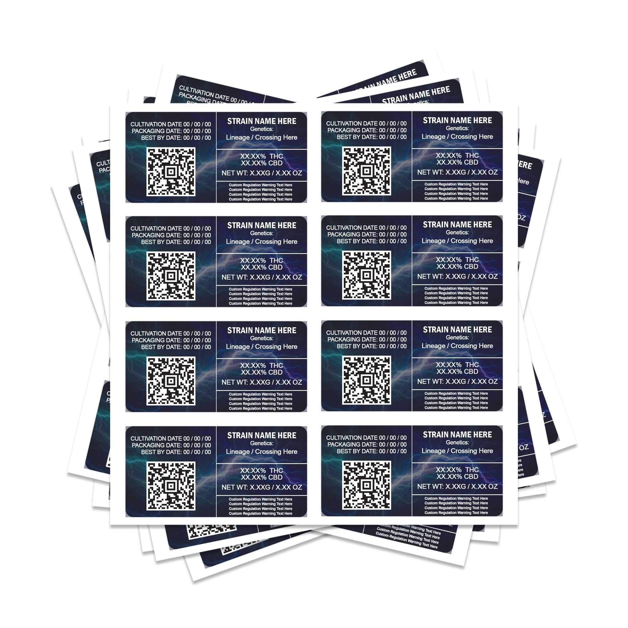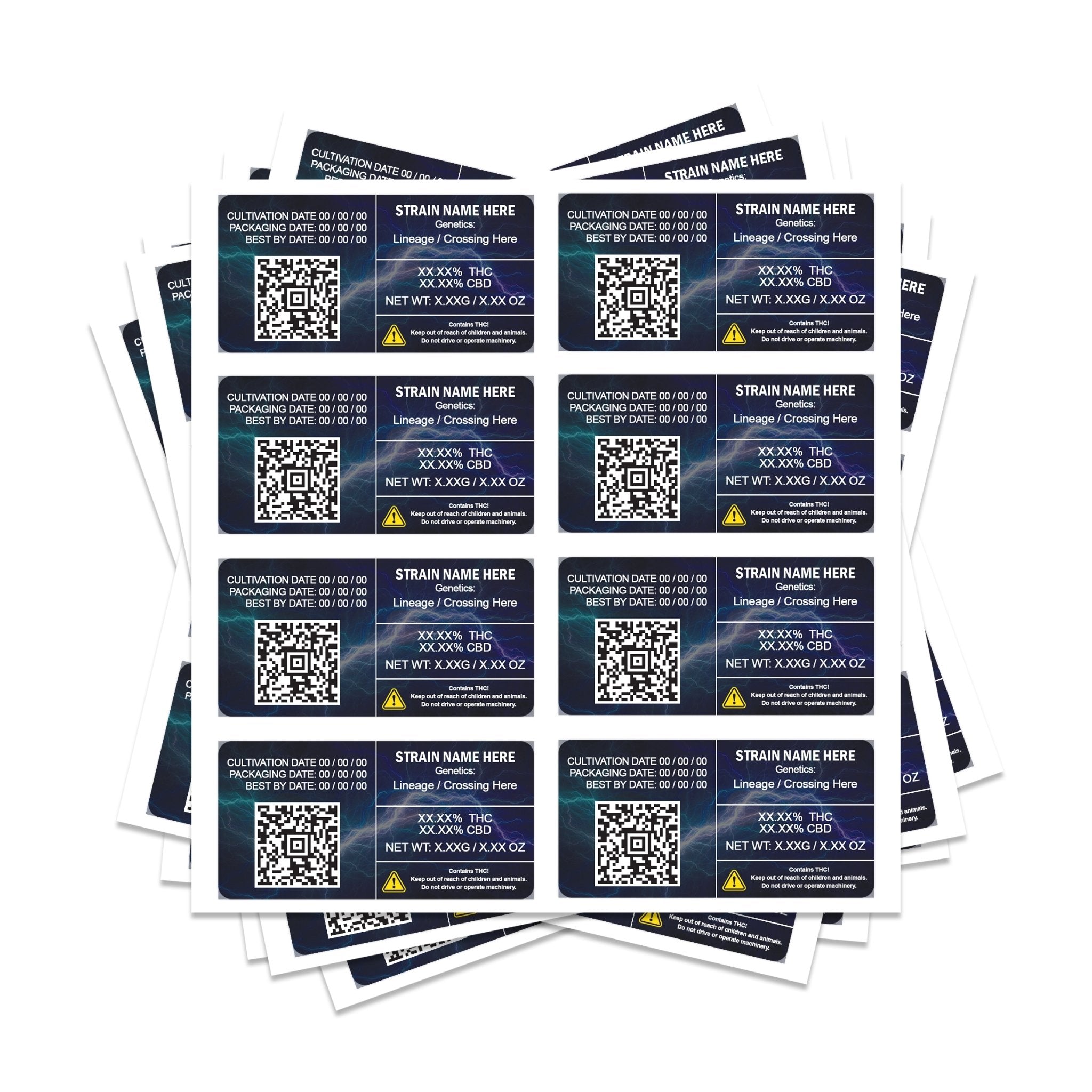 Étiquettes de tension QR rectangulaires 11x5,5 cm, parfaites pour les sacs mylar de 14 g et 28 g.