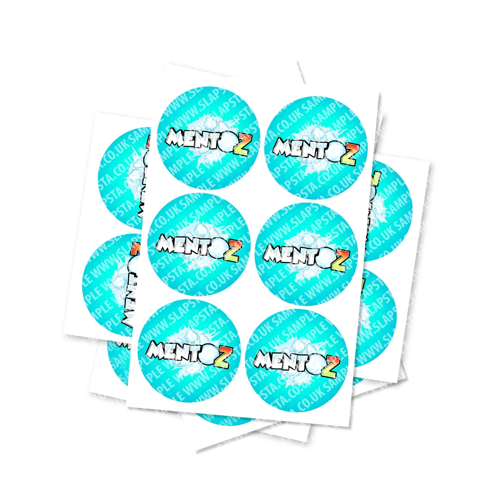 Autocollants circulaires en vinyle brillant Mentoz de haute qualité. Veuillez choisir la taille et la quantité dont vous avez besoin dans le menu déroulant.