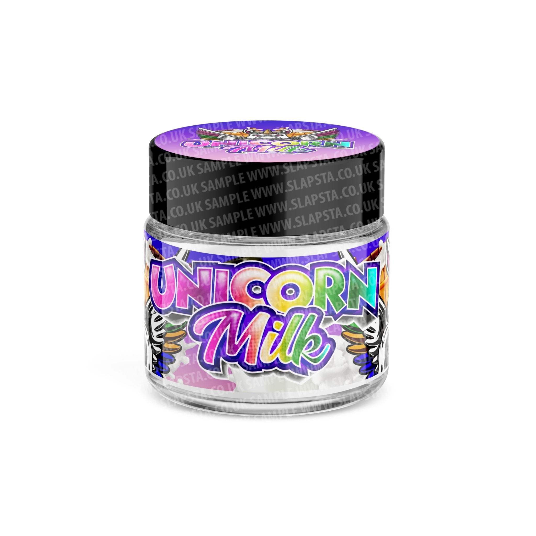 Pots de séchage/présentoirs en verre pré-étiquetés Unicorn Milk