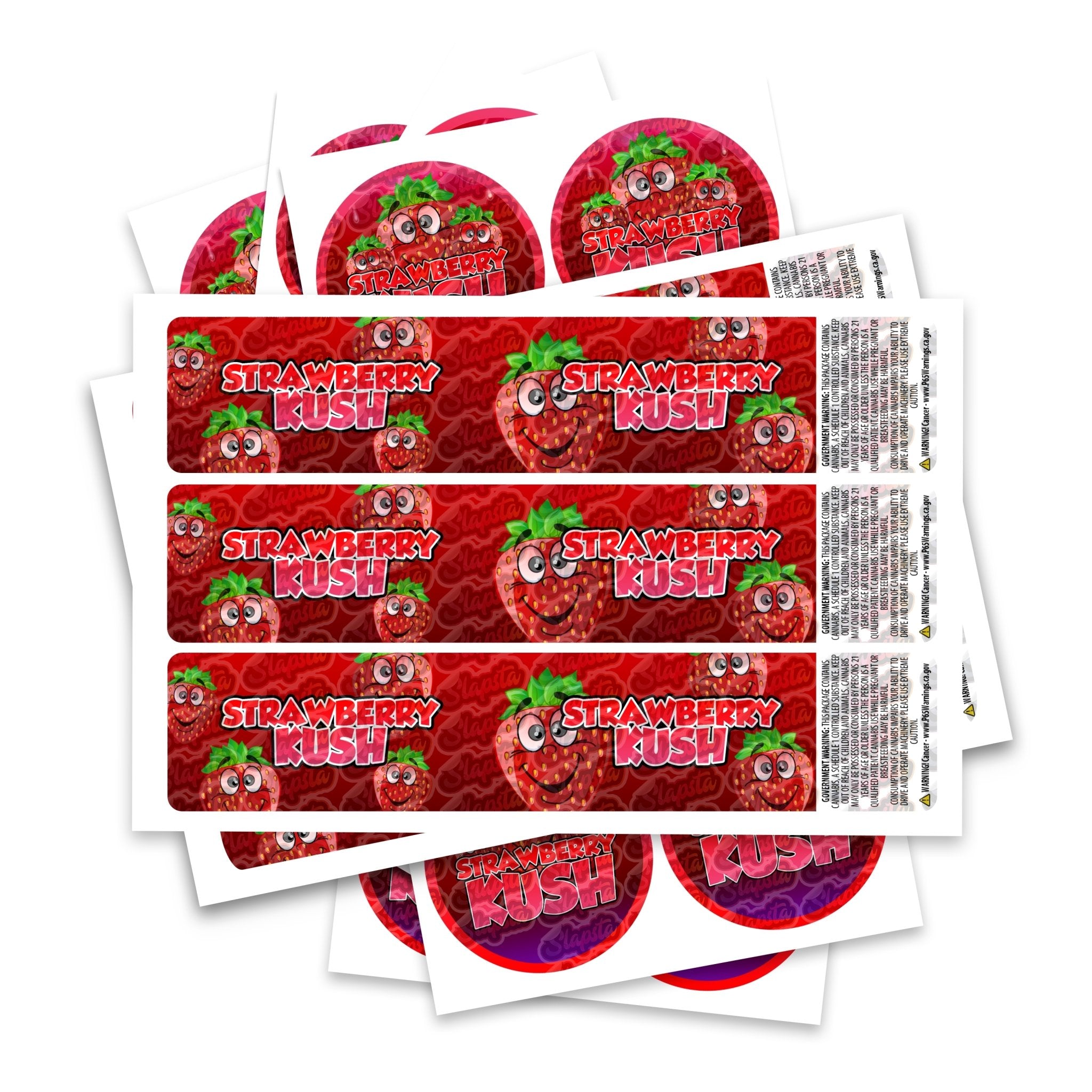 Étiquettes prêtes à l'emploi pour variétés de Strawberry Kush, disponibles pour s'adapter à notre gamme de pots JAR et TAMPER STRIP POT. Si vous souhaitez que vos étiquettes soient fabriquées dans une certaine taille, veuillez nous contacter. Pour des designs sur mesure, veuillez consulter notre section design.