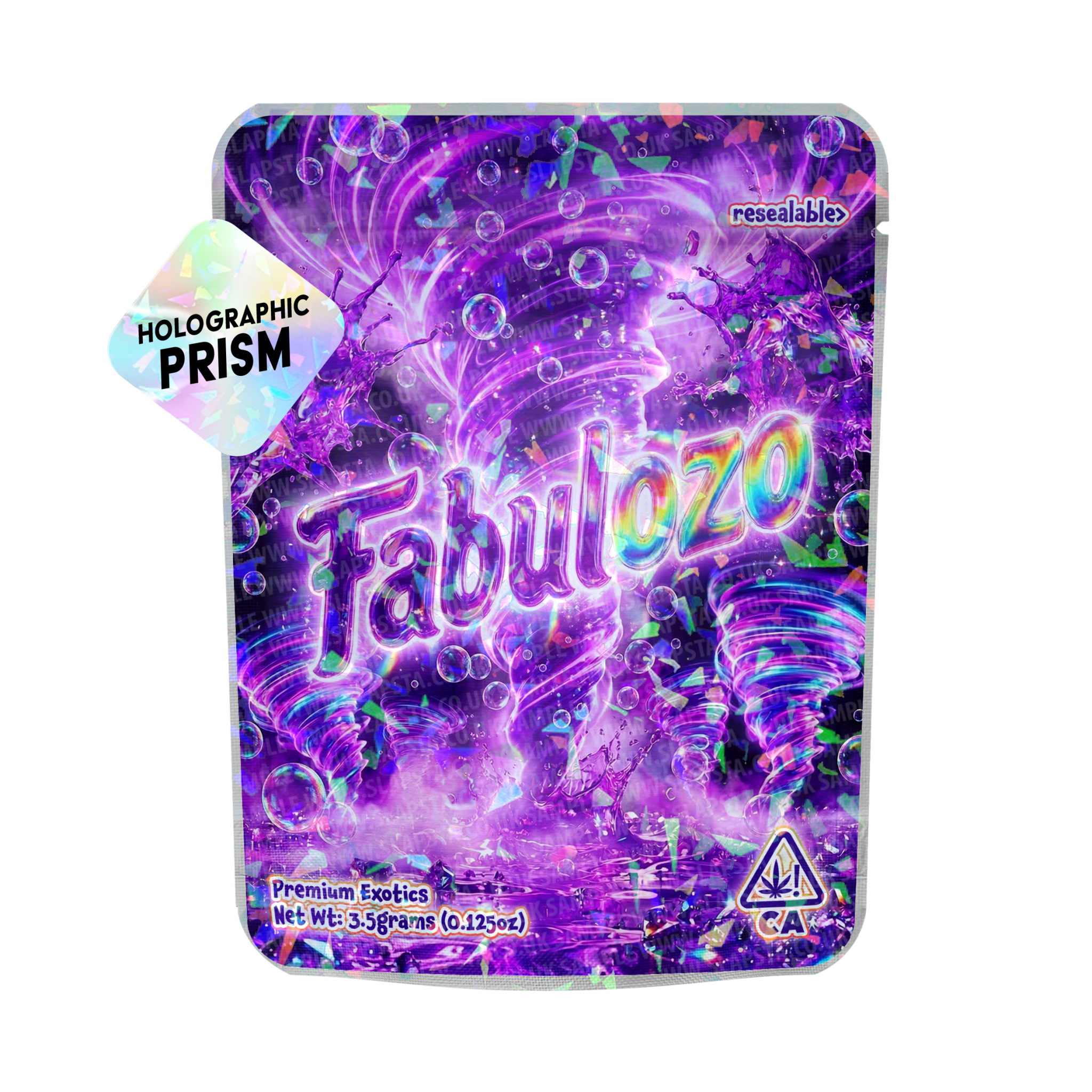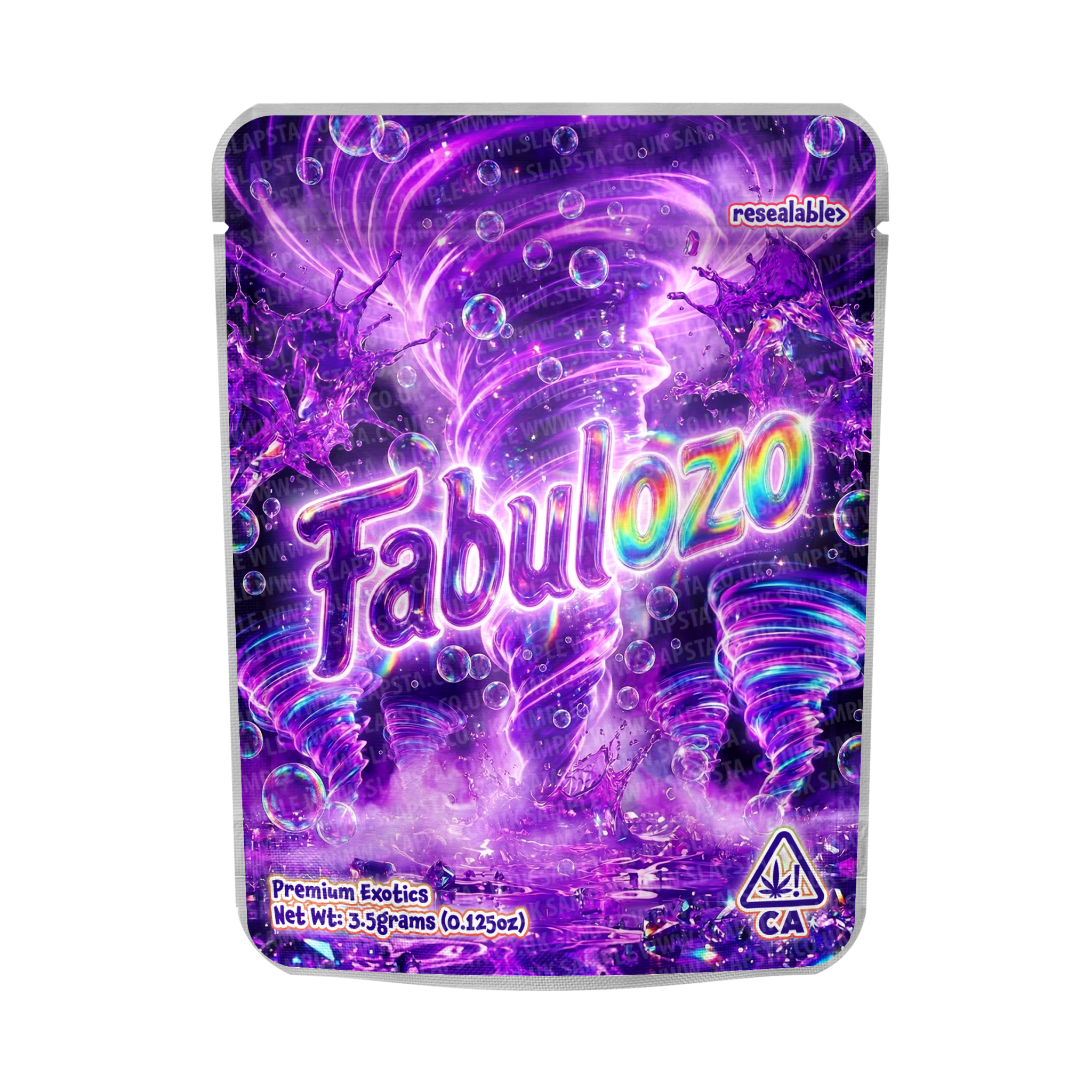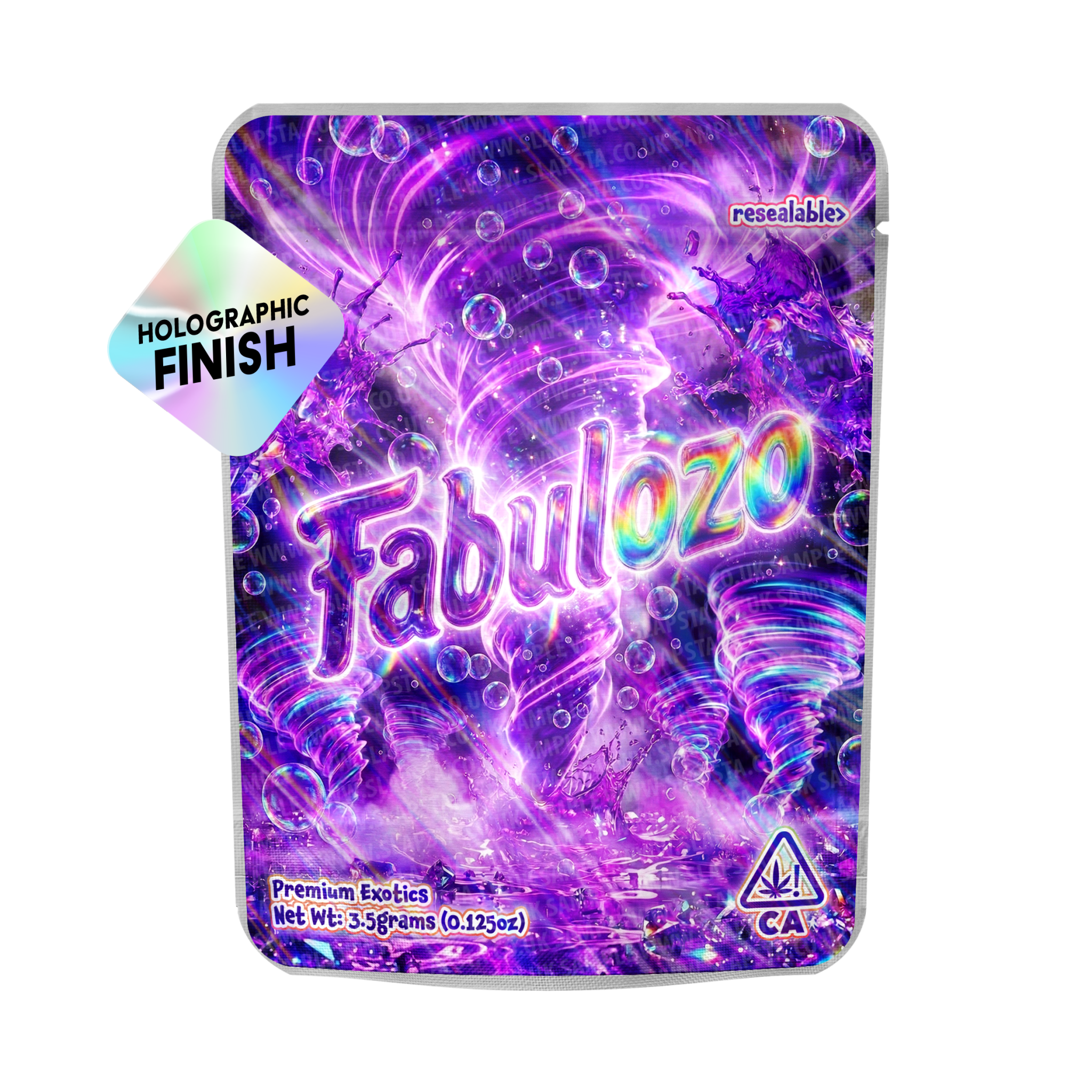 High-grade smell-proof resealable mylar pouches with a Fabulozo vinyl label professionally pre-applied, built for clean, retail-ready packaging.