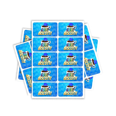 Étiquettes autocollantes en vinyle brillant Blue Biscotti. Veuillez choisir la taille et la quantité dont vous avez besoin. Pour obtenir de l'aide sur le choix des tailles, veuillez consulter l'image du guide des tailles ou utiliser les mesures fournies.