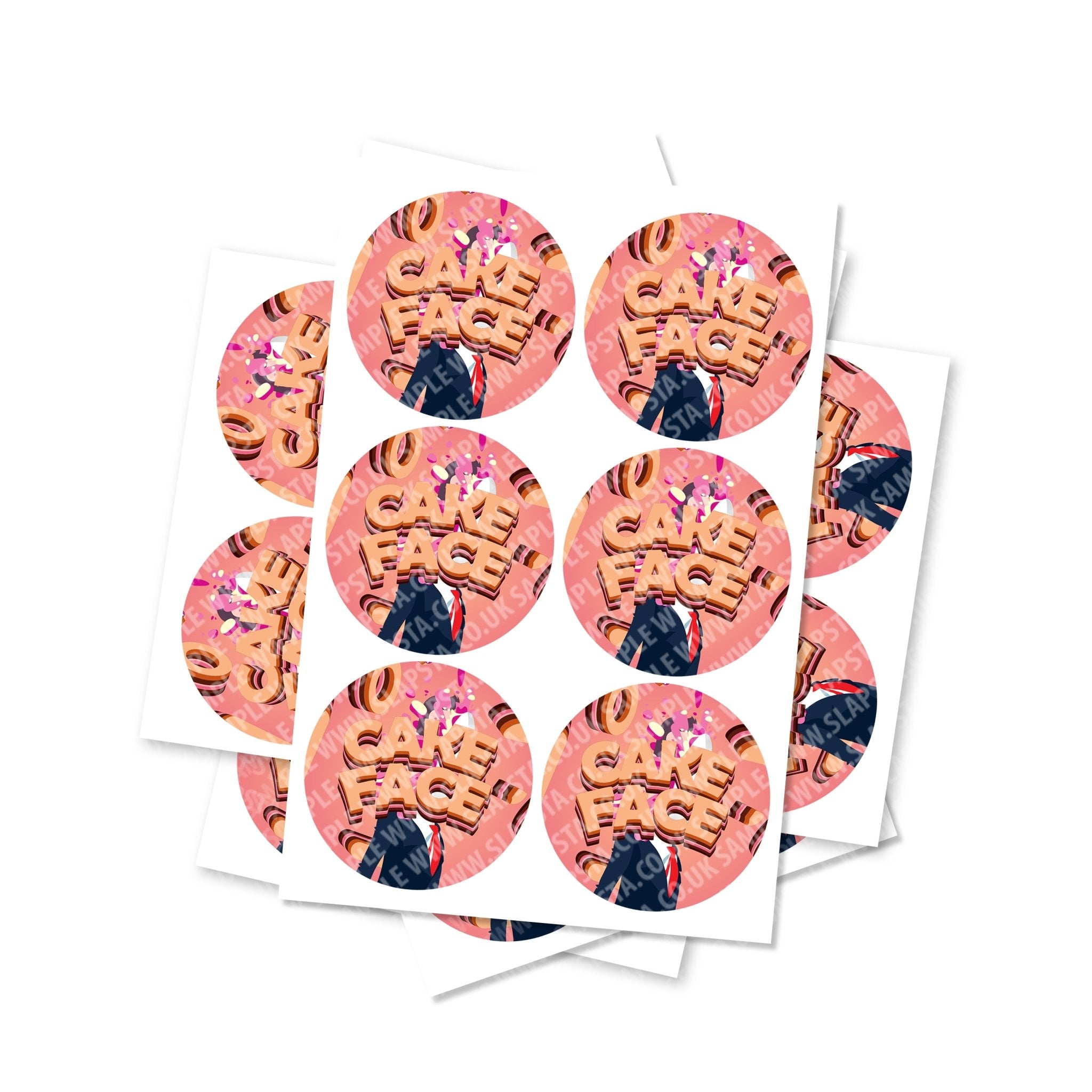 Autocollants ronds en vinyle brillant Cake Face de haute qualité. Veuillez choisir la taille et la quantité dont vous avez besoin dans le menu déroulant.