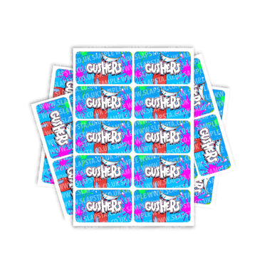 Étiquettes autocollantes en vinyle brillant Gushers. Veuillez choisir la taille et la quantité dont vous avez besoin. Pour obtenir de l'aide sur le choix des tailles, veuillez consulter l'image du guide des tailles ou utiliser les mesures fournies.